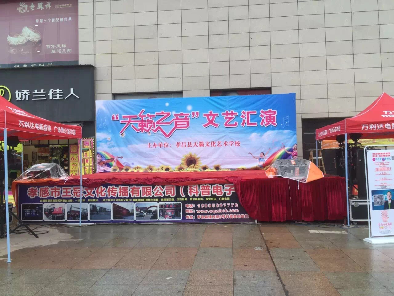 孝感市王冠文化傳播有限公司是由孝昌科普電子獨(dú)資,承接演出、奠基開盤、門店開業(yè)、企業(yè)年會(huì)、比賽及社會(huì)公益活動(dòng)的策劃和執(zhí)行。對(duì)外出租LED屏、音響、舞臺(tái)、燈光、投影、桁架。代理整合主持人、演員、模特、明星等節(jié)目資源。